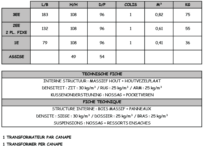 Canapé au design très simple avec systèmes de relaxation électriques inclus. Vous avez plusieurs choix, vous pouvez les acheter à la pièce ou à un prix fixe. Le grand siège 3EE avec 2 fauteuils inclinables électriques actionnables avec des boutons à l'extérieur des accoudoirs. La partie médiane est fixe. Le 2EE, avec 2 fauteuils inclinables électriques actionnables avec des boutons à l'extérieur des accoudoirs. Le 2FIXE est sans systèmes. Le fauteuil est doté d'un système relax avec des boutons à l'extérieur du bras. Pas d'ascenseur dans ce modèle 1E. Tous les mécanismes sont comme suit, le dossier monte en premier puis les pieds montent.